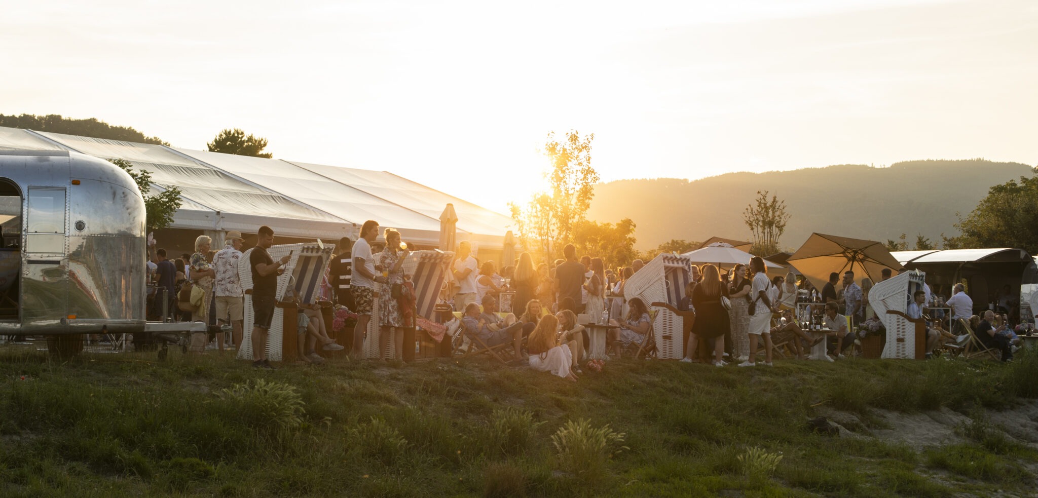 Entweder mittendrin im Zelt oder am Strand nebenan mit einem Glas Wein wirst du bei uns in Rossatzbach dabei sein.
